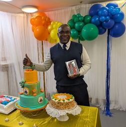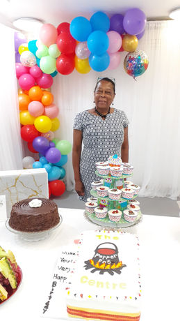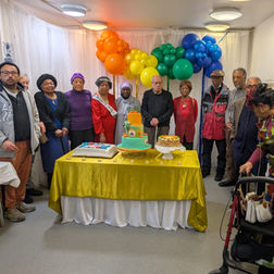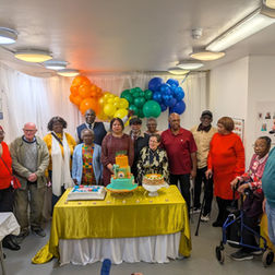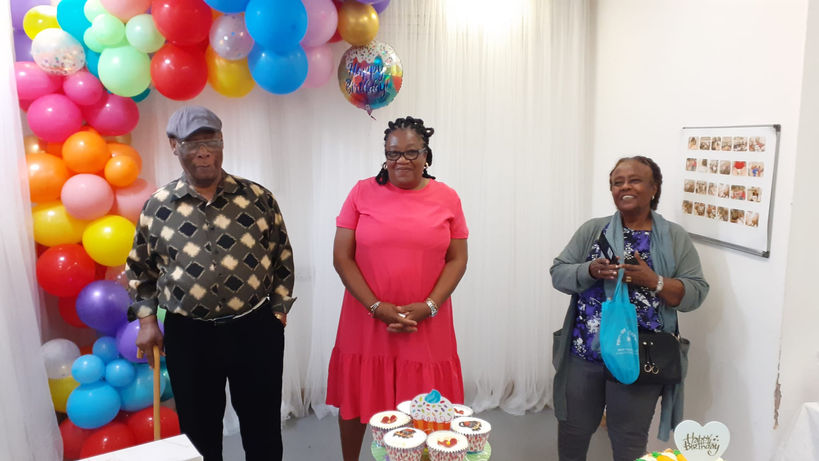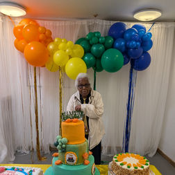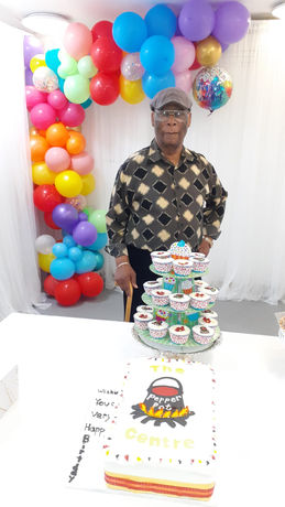Nathan Gordon celebrating his 90th Birthday with his friends at the pepper Pot Centre. This long time member attends the centre every day and is an avid domino player.